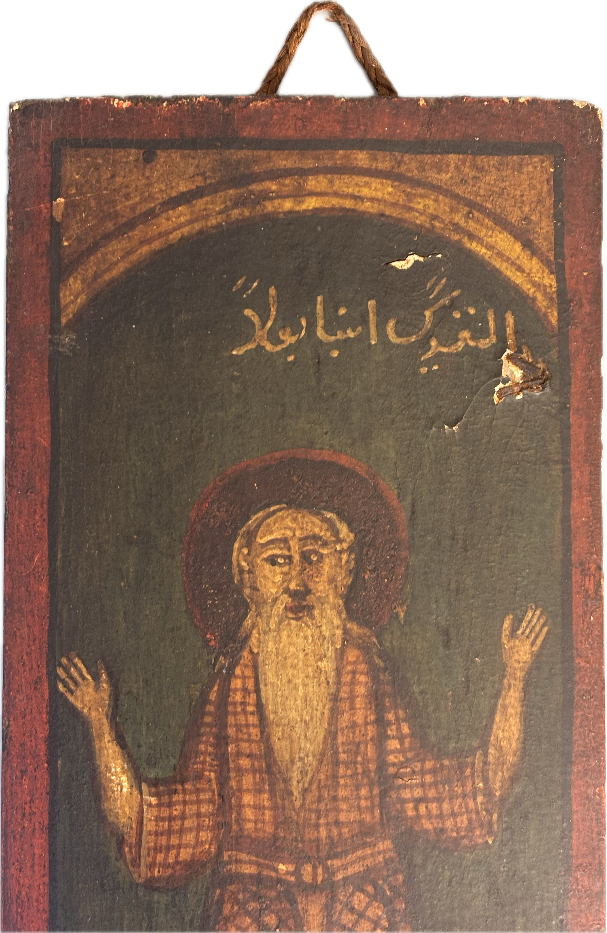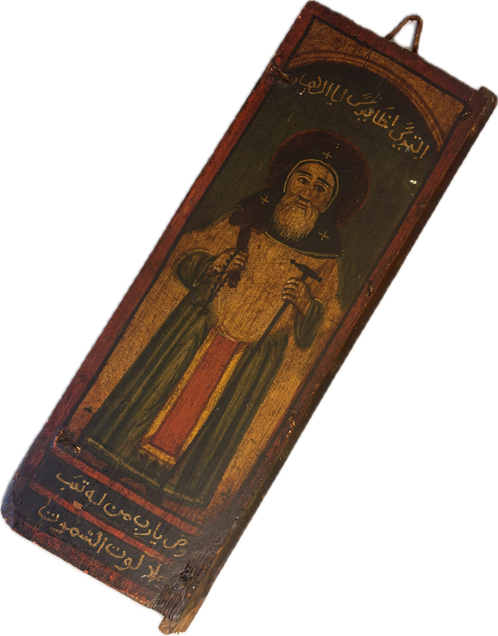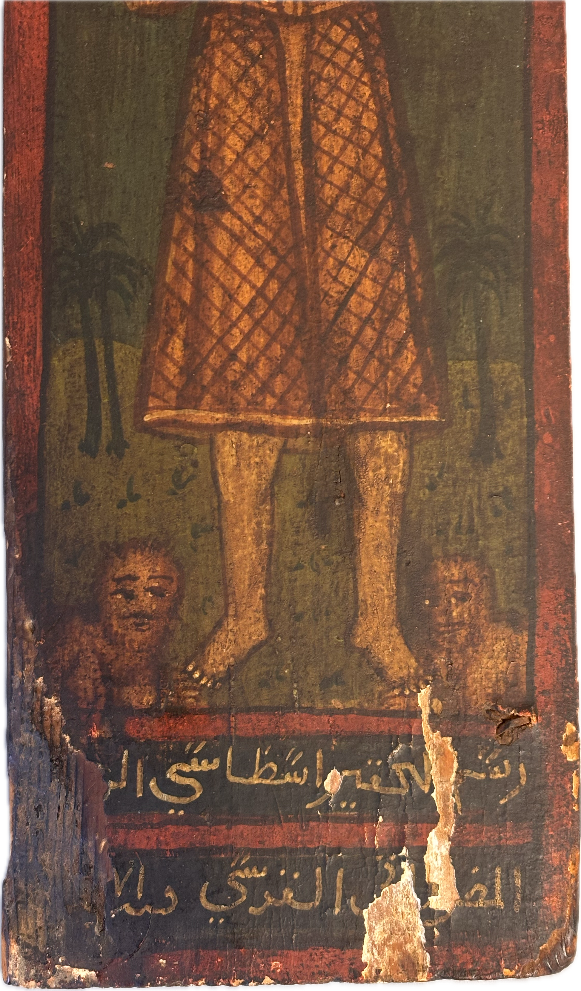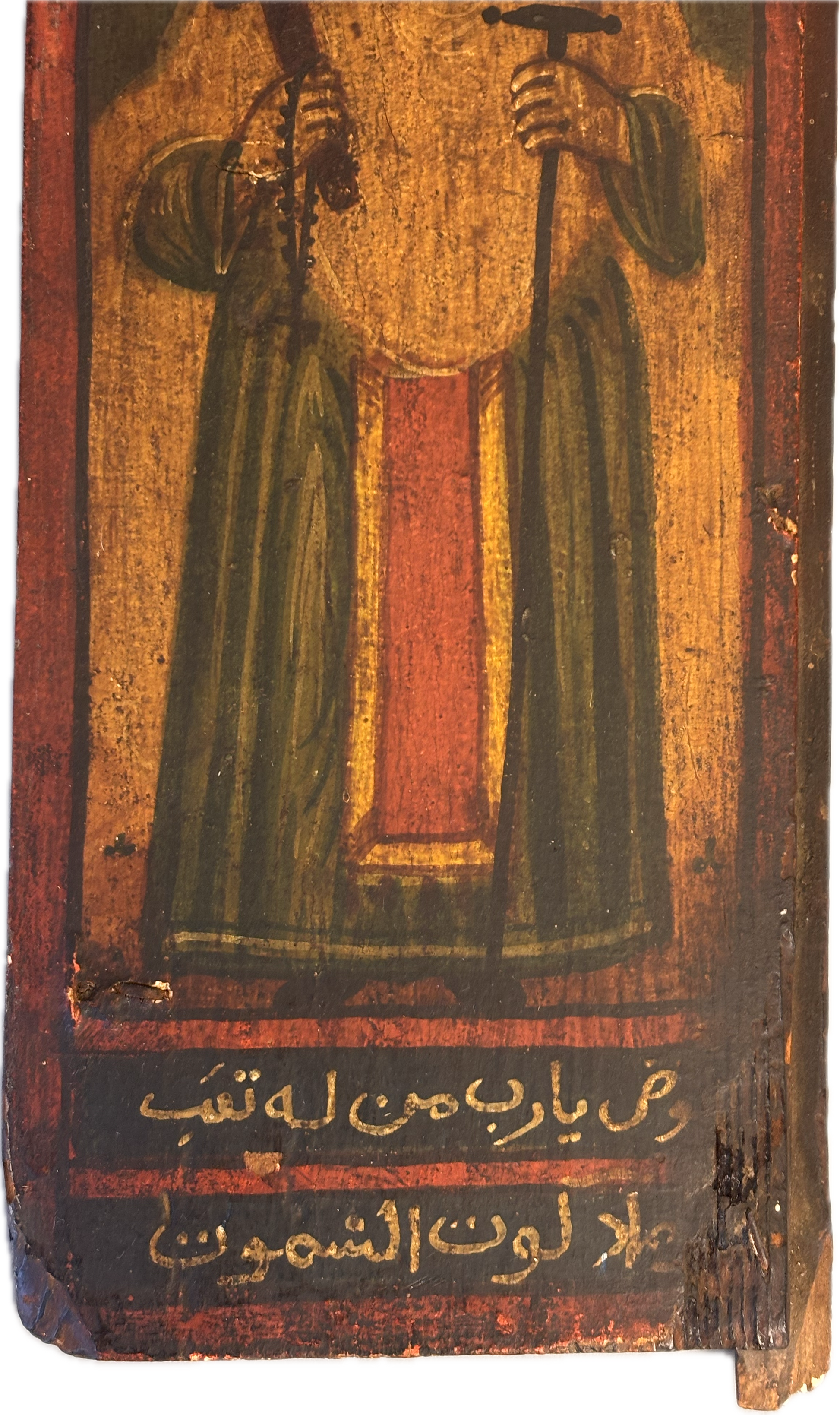 These 18th-century Ottoman hand-painted wooden panels depict two Egyptian Christian Coptic saints. Saint Paul of Thebes (Anbā Būlā), known as the first Christian hermit, who symbolized a life of complete solitude and devotion. Saint John the Short (also called John Colobus) is celebrated for his humility and spiritual guidance.